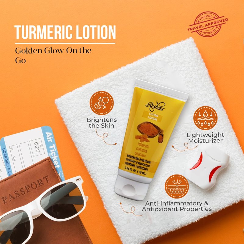 Reshma Beauty Travel Size Turmeric Lotion| Face & Body Lotion for Normal to Dry Skin | Infused with Turmeric Extract, Moisturizes and Soothes Skin | TSA Approved| For Daily Use - Cruelty Free
