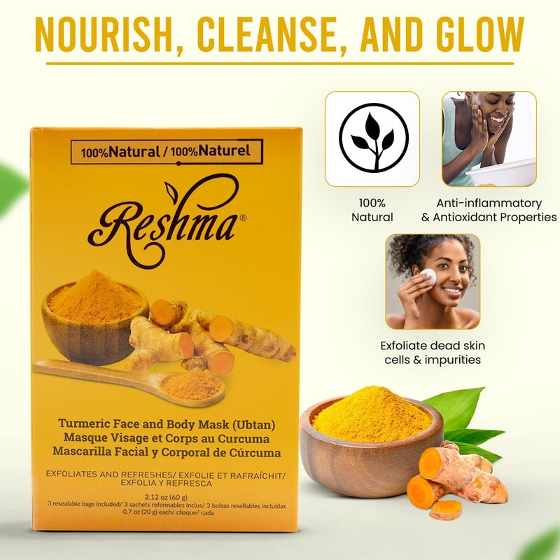 Reshma Beauty Turmeric Face Mask (Ubtan) | All Natural Ingredients - Barley Seed, Gram Seed, Turmeric, and Sandalwood | Brightening and Hydrating Mask | Haldi Ceremony Powder | (Pack of 1), 2.12 oz
