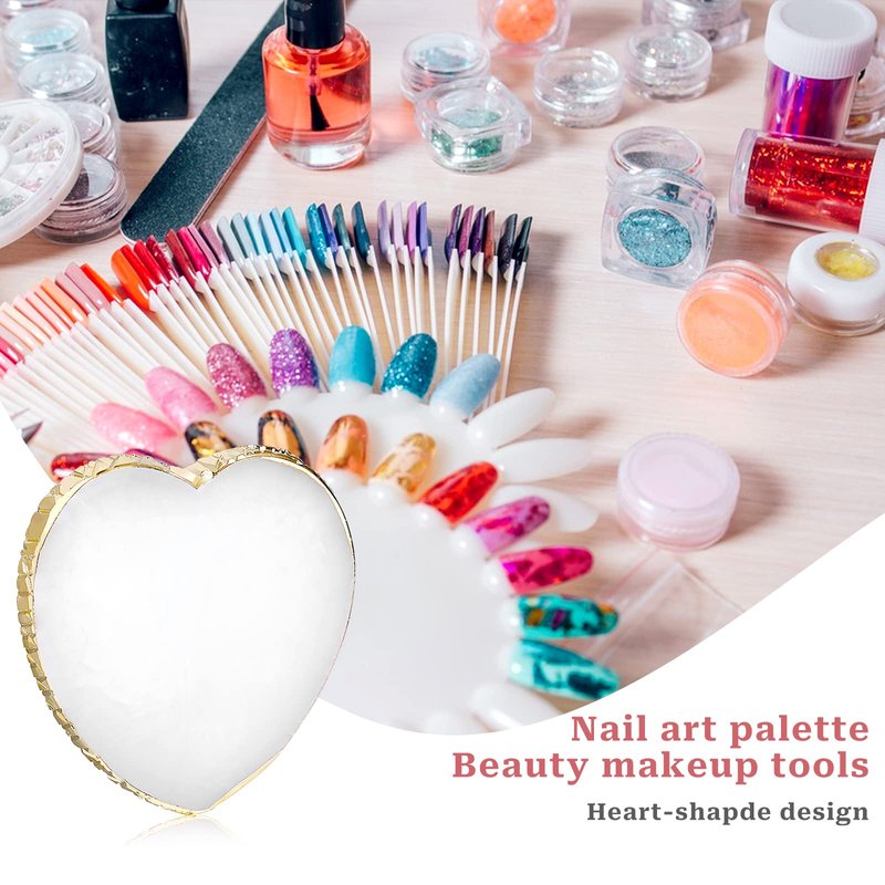 Resin Nail Art Palette Nail Art Painting Mixing Color Palette Heart Shape Gold Edge Nail Gel Color Makeup Display Board Manicure Tool