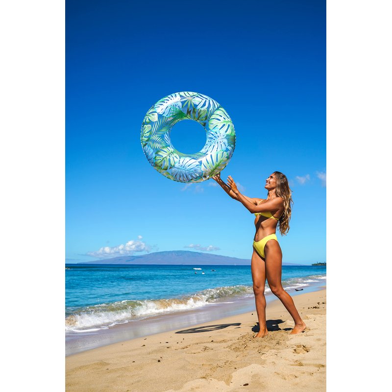 Resort Collection Inflatable Pool Floats, Swim Rings, & Hammocks in Bright Palm Print Patterns. (Resort Collection Palm Print 40" Pool Tube)