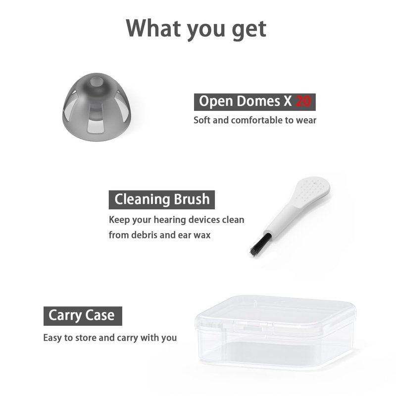 - Open Dome: with perforated dome wall provide good ventilation of the ear canal and a brighter sound.