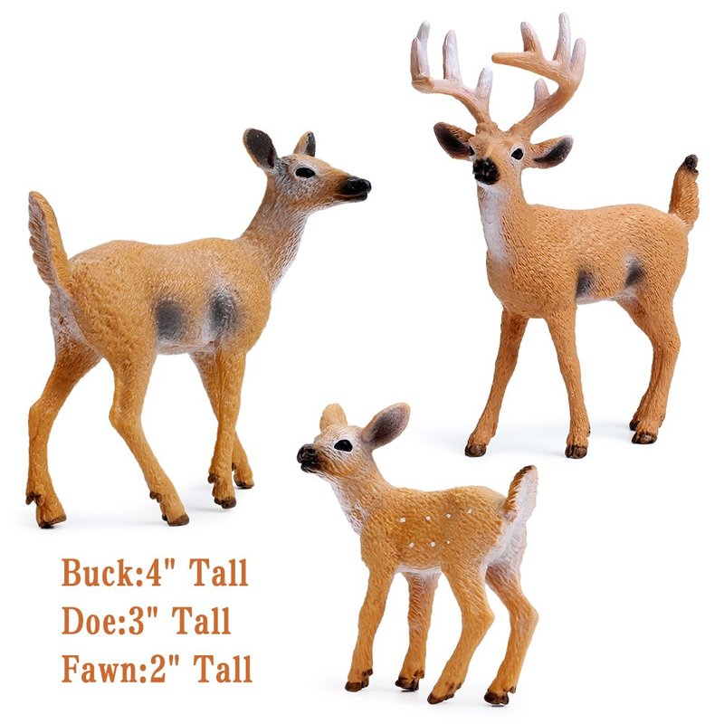 - White tailed deer family come with a 4 inches tall mini buck, a 3 inches tall doe and a 2 inches tall fawn.