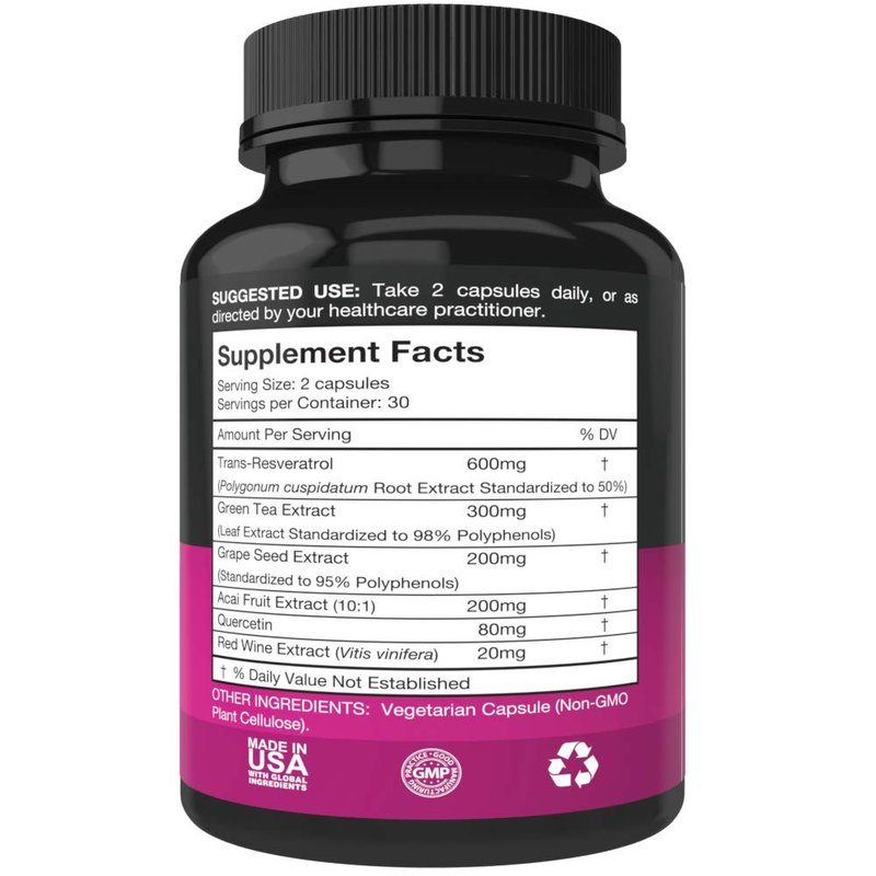 - Simply The Best: Want the best resveratrol supplement on the market? Then look no further. Unlike competitors who try to hide behind proprietary blends, we are confident in our winning resveratrol capsules and show you exactly what you're getting. We include several ingredients to maximize effectiveness. A potent dose of trans resveratrol powder with added green tea extract, grape seed extract, acai fruit extract, quercetin and red wine extract.