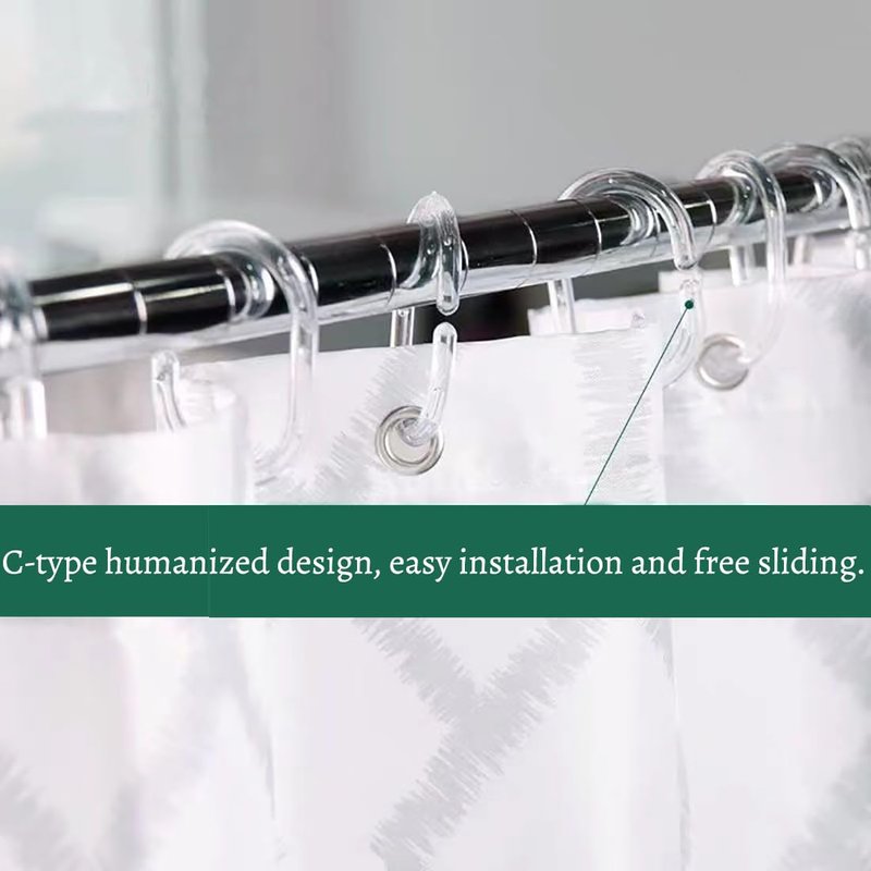 - The open C-shaped design and durable and flexible materials allow the shower curtain to slide steadily and freely.