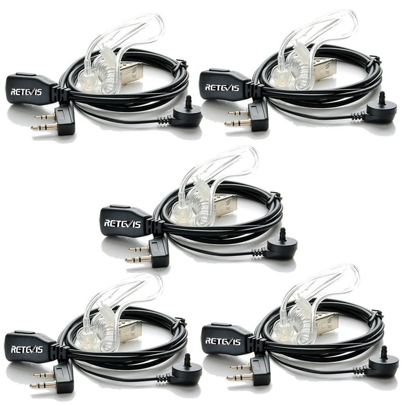 Retevis Acoustic Tube Walkie Talkie Earpiece with Mic,2 Pin, for RT22 RT68 RT21 H-777 RT86 RT19 RT18 RB45,Compatible with BAOFENG UV-5R Kenwood pxton 2 Way Radio,Security 2 Way Radio Headset(5 Pack)