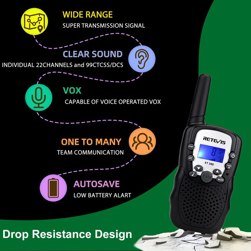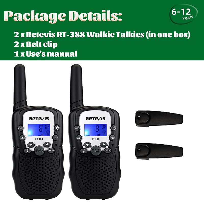 Retevis RT388 Walkie Talkies for Kids,Toys Walkie Talkie for 6-12 Years Old Boys Girls,Kids Toys Gifts for Outside Trip Camping Hiking (Black,1 Pair)