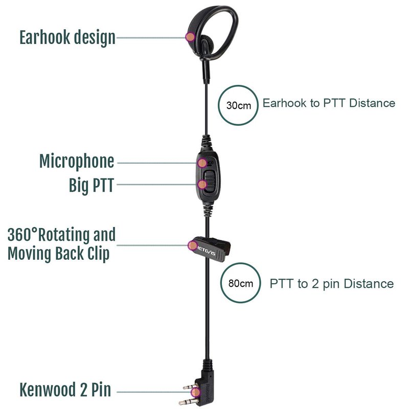 - Walkie talkie earpiece; specially designed for RT68 walkie talkie; also compatible with most Kenwood 2 Pin walkie talkies