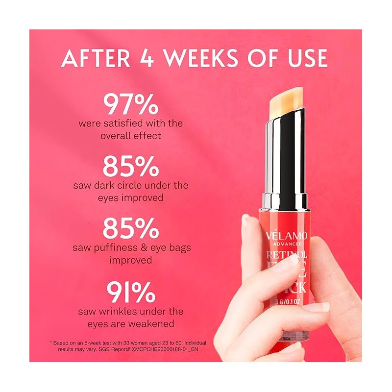 Clinically proven to show visible improvements in just 3-4 weeks, this retinol eye cream stick locks in moisture, softens wrinkles, and enhances skin elasticity for a well-rested, youthful glow. Designed to be gentle yet effective, it’s perfect for sensitive skin and can be used not only around the eyes but also on the face, neck, and body for comprehensive anti-aging benefits.