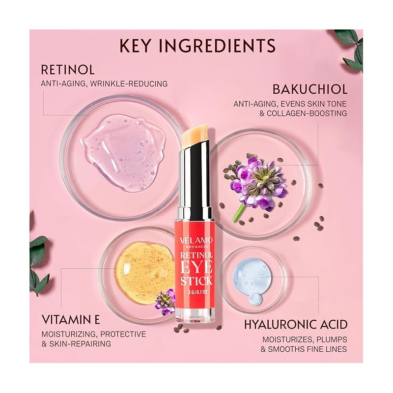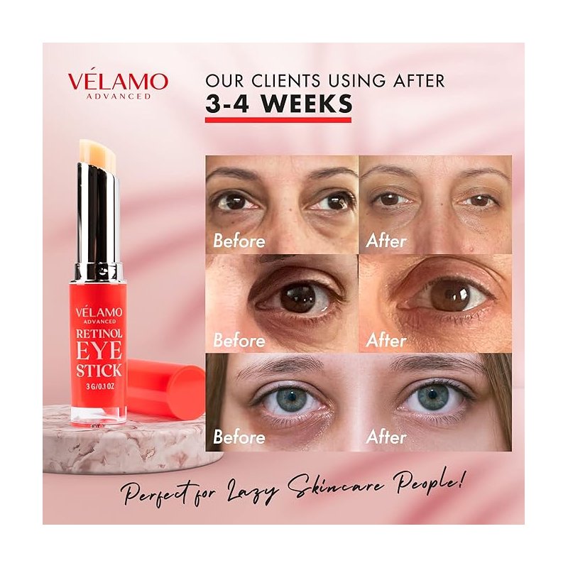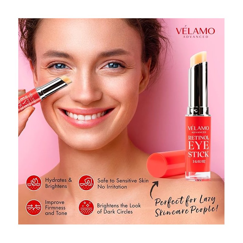 Say goodbye to dark circles, puffiness, and fine lines with the VELAMO ADVANCED Retinol Eye Stick—your go-to anti-aging solution for brighter, younger-looking eyes. This easy-to-use, glide-on balm is packed with encapsulated retinol, a powerful peptide complex, and vegan squalane to deeply hydrate, firm, and brighten your under-eye area.