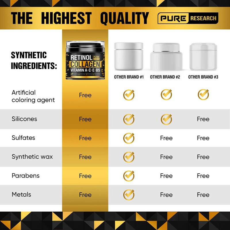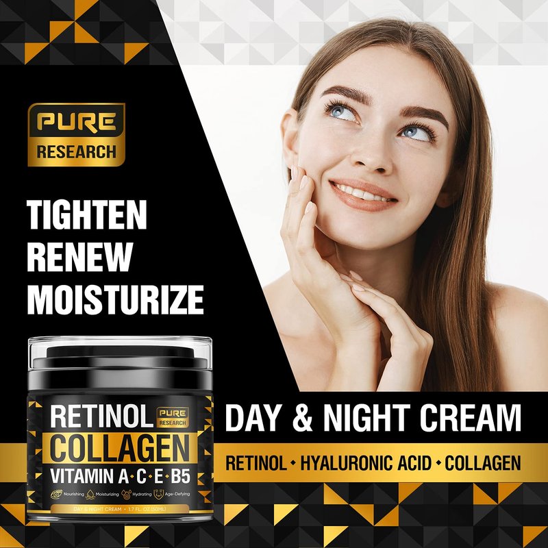 - Anti-aging moisturizer with retinol will help decrease the appearance of fine lines, wrinkles, crows feet, dark circles, puffiness. Collagen lotion tightens and firms skin and is great for sagging skin on your neck, face, hands, and decollete.