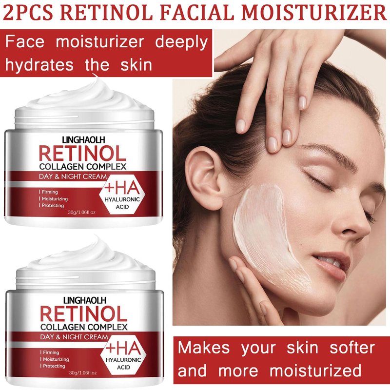 Retinol Facial Moisturizer,2PCS Moisturizing Retinol Collagen Firming Cream for Face,Day & Night Long Lasting Hydrating Face Moisturizer Skin Care Cream for All Skin Types