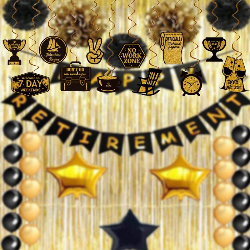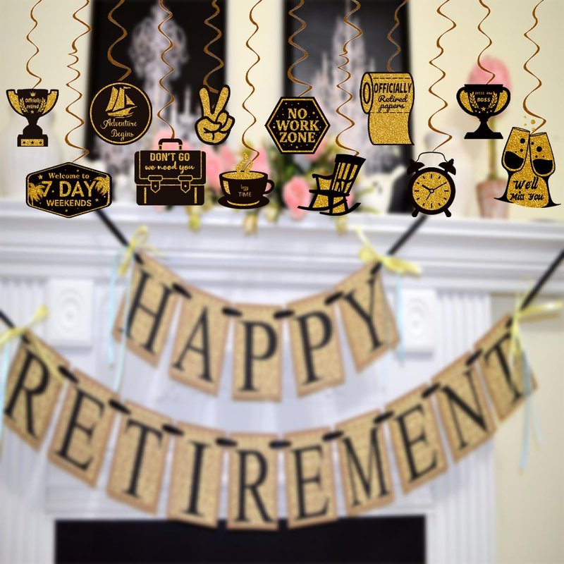 Retirement Party Streamers Farewell Party Decoration, Going Away Party Decor Supplies Hanging Swirls Party Streamers 24pcs Happy Retirement Party Decor Banner, Assembled and Ready to Use