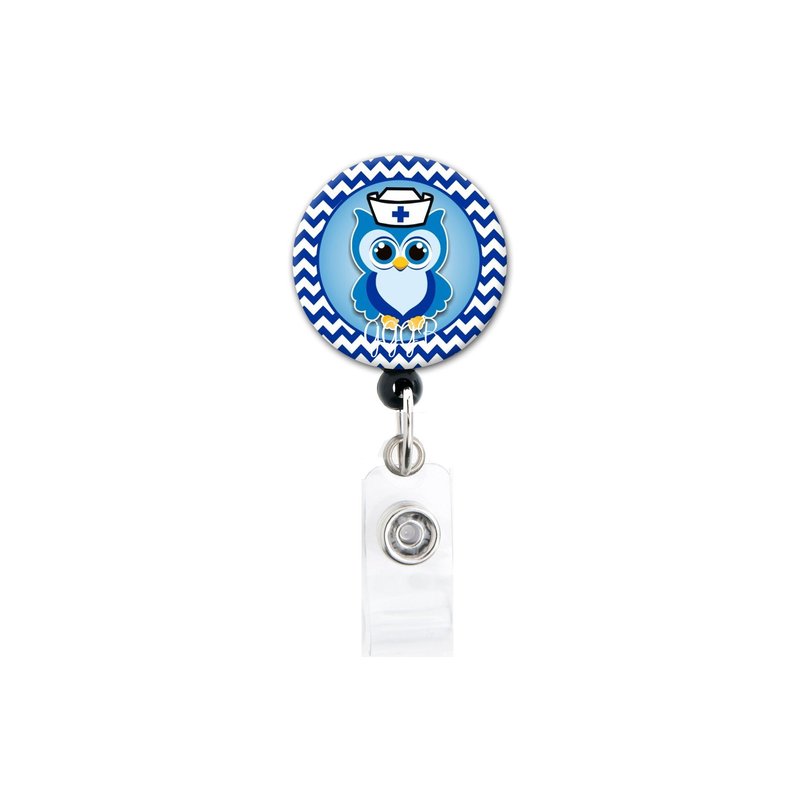 Retractable Badge Reel - Nurse Owl Blue - Badge Holder Swivel Clip
