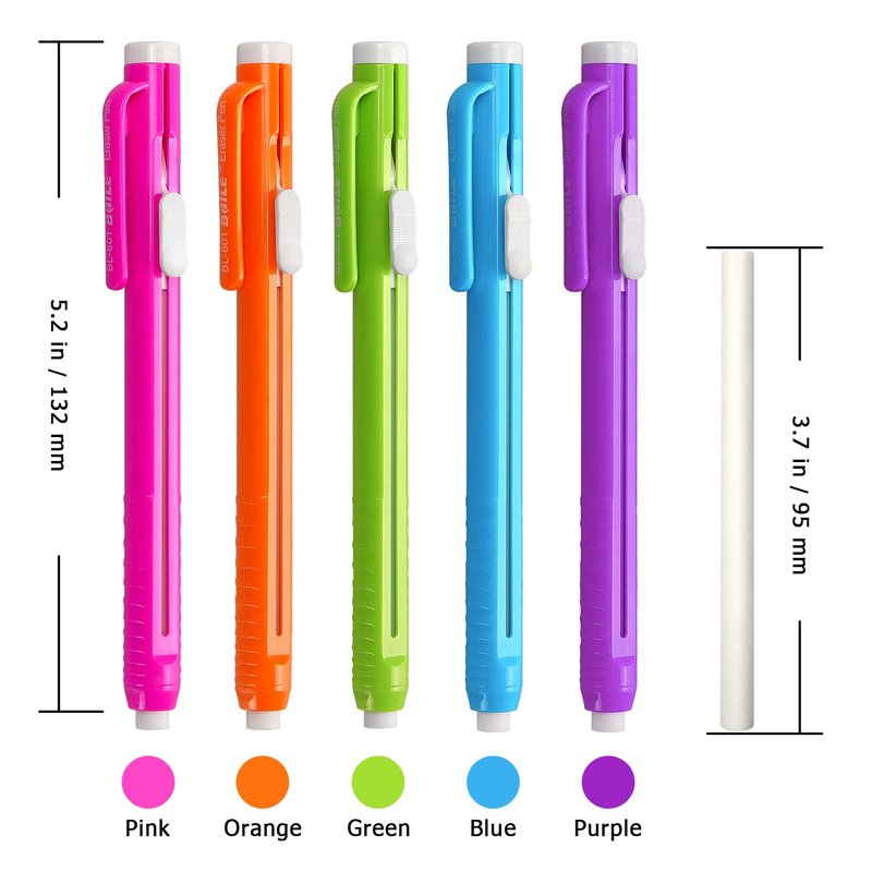 Retractable Mechanical Eraser Pen, Pen-Style Erasers Assorted Color, 5 Pack