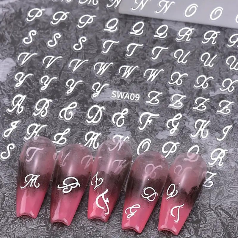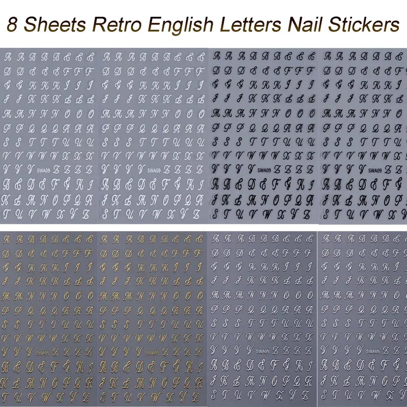 Package Contents: 8 Sheets Letter Nails Art Sticker