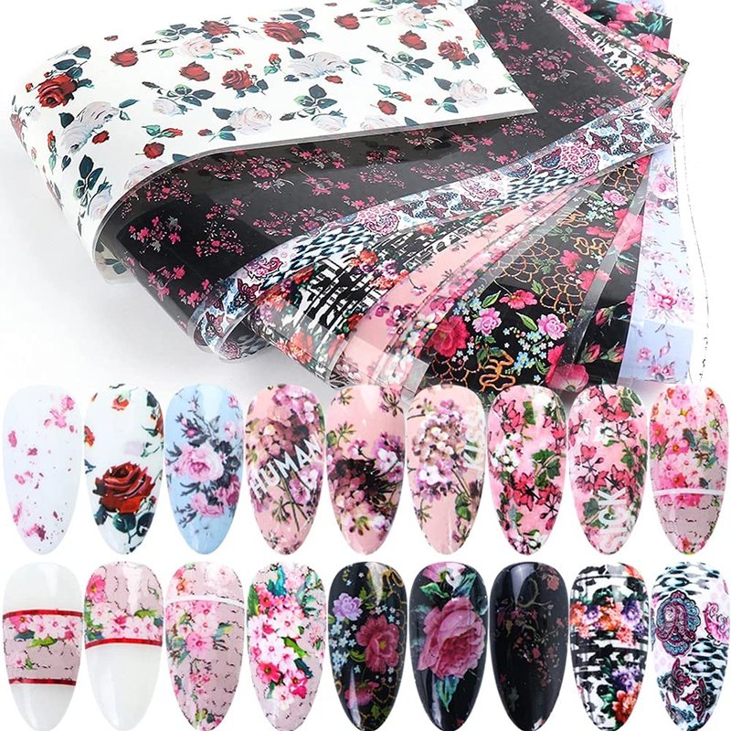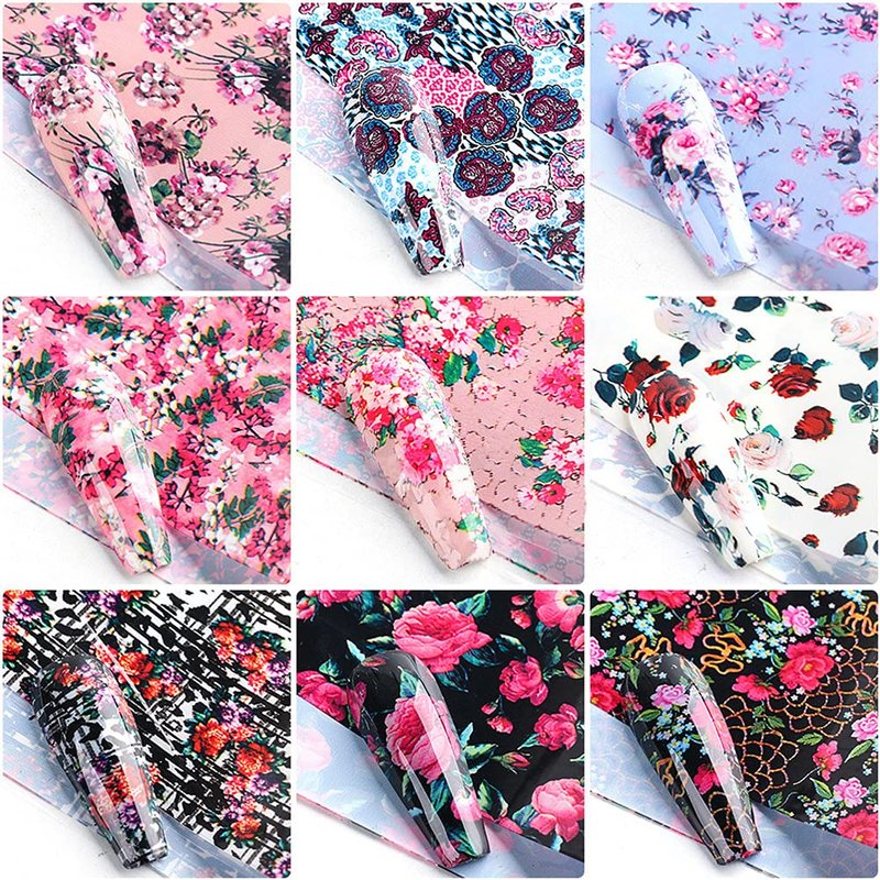 Retro Flower Nail Art Foil Transfer Stickers, Nail Art Stickers Foil Transfers Decals Holographic Rose Flowers Starry Sky Design for Nails Supply Floral Manicure Tips Wraps Nail Art Decorations 10pcs