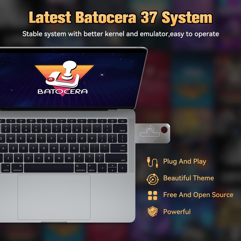 Retro Game Console 128G USB Drive with Batocera Game System, 43254 Retro Games Emulator Game Console Stick, Wireless Retro Game Console with 74 Emulators, Plug and Play Retro Drive for PC/Handheld