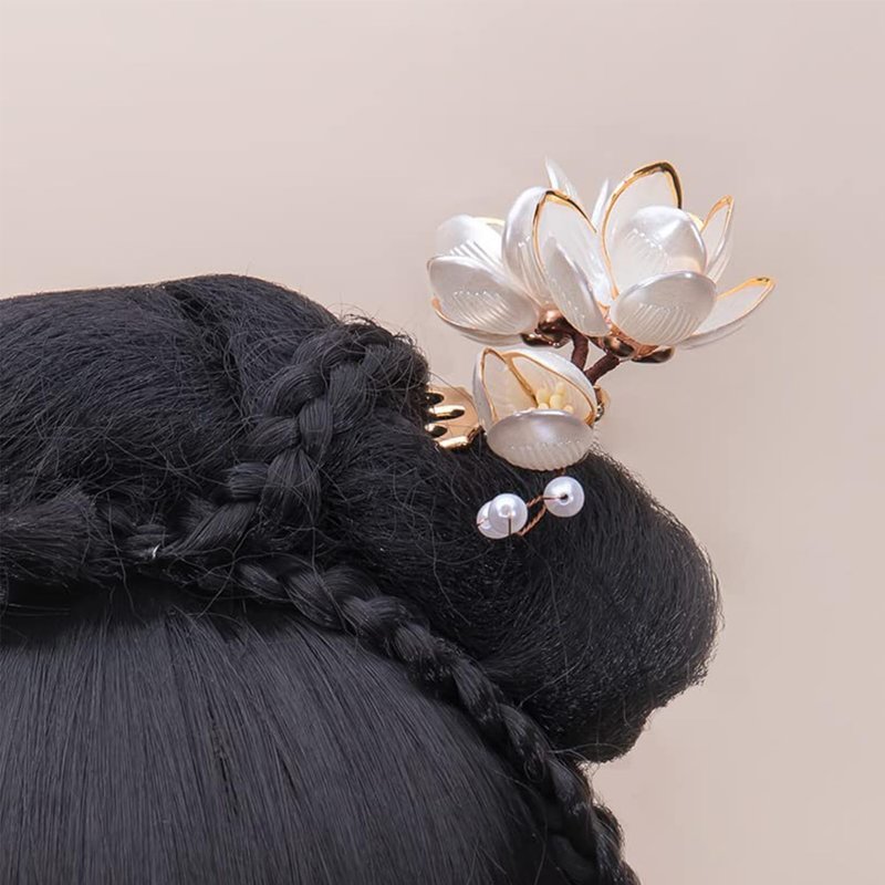 - 【UNIQUE DESIGN】: This hairpin is inspired by Chinese lotus flowers and features beautiful imitation pearls that add a touch of elegance to any hairstyle.
