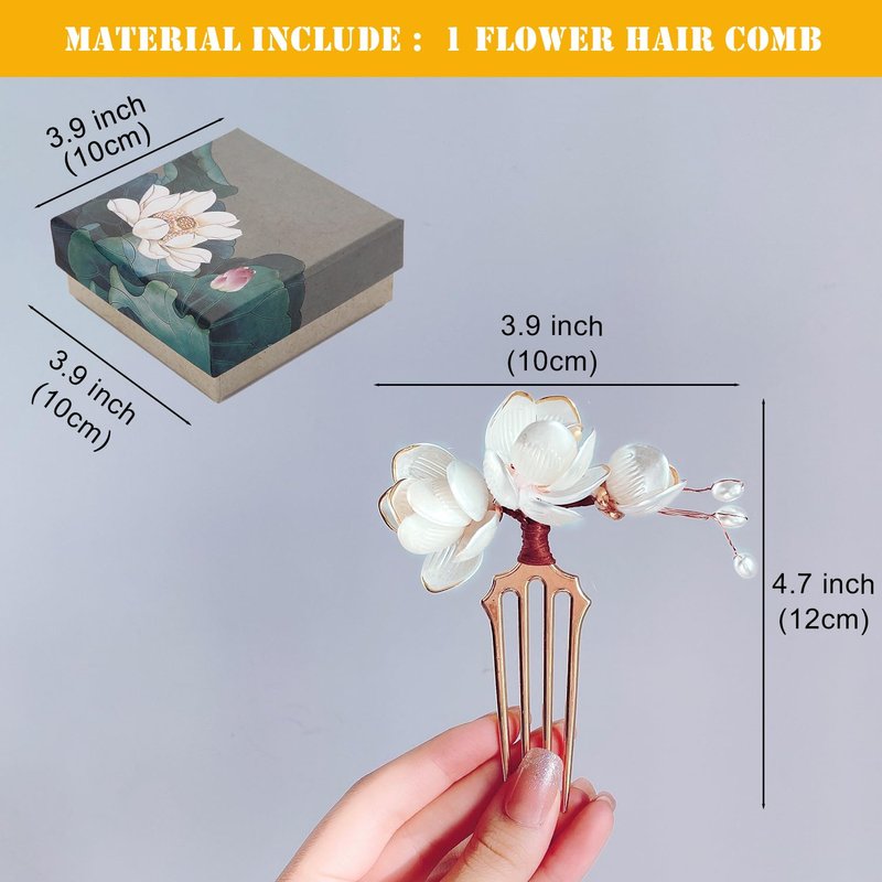 - 【PACKAGE INCLUDES】: 1 PCS Lotus Flower Hairpin. Size: About 3.9 x 4.7 inch (10 x 12cm). Nice gift box packaging.