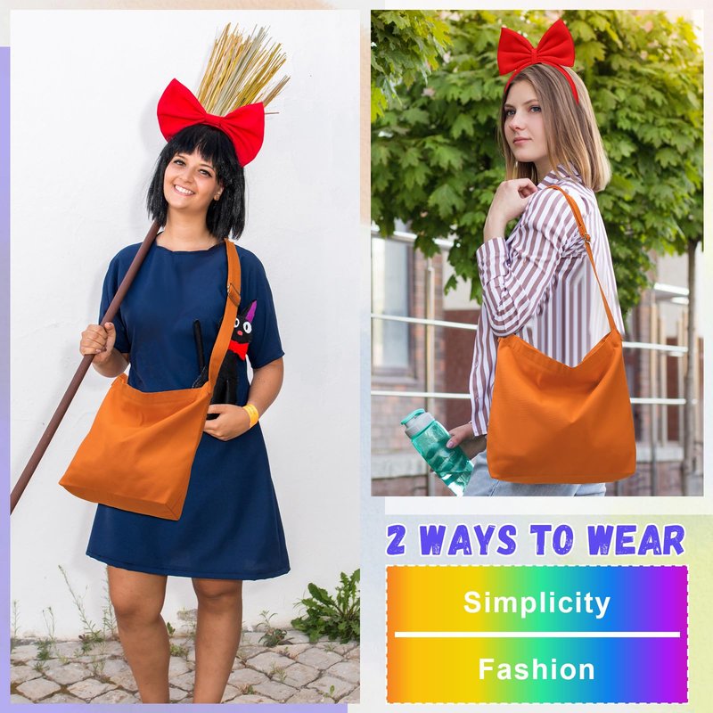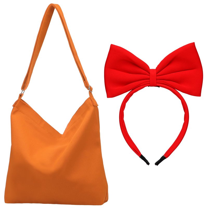 Retrowavy 2 Pcs Anime Cosplay Witch Costume Accessories Red Bow Headband and Orange Canvas Shoulder Tote Bag Set for Women Halloween Party