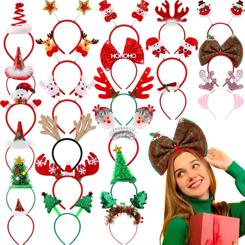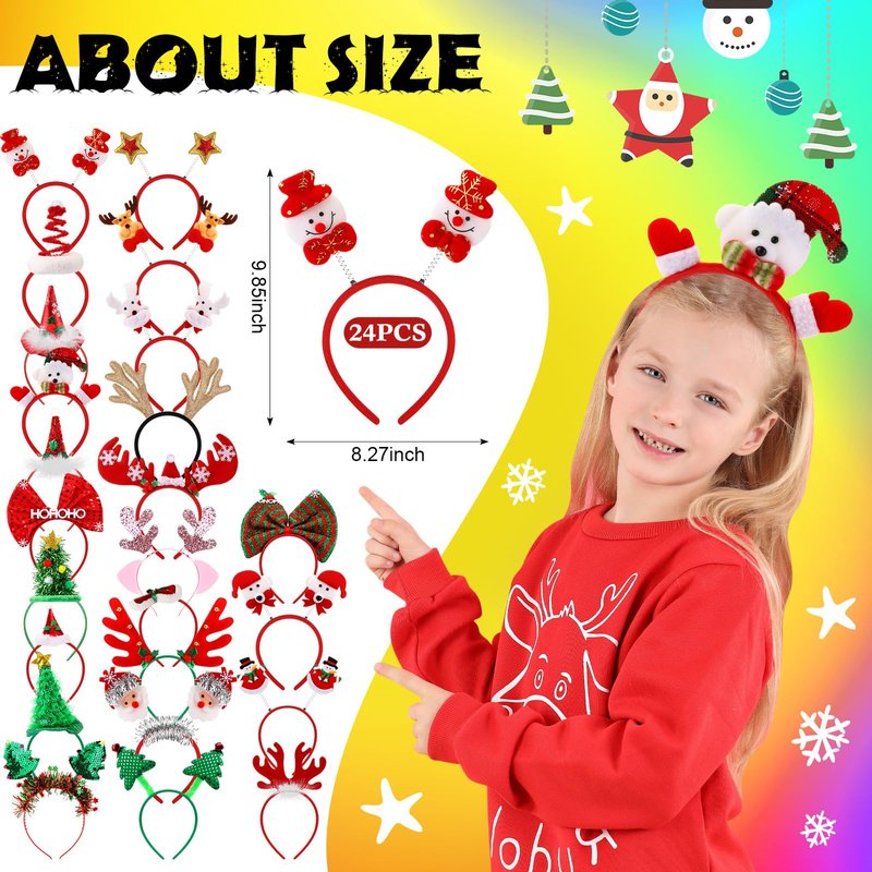 Retrowavy 24 Pcs Christmas Headbands Fun Holiday Headbands with Different Designs Cute Christmas Head Toppers Adult Party Favors for Women, Men Annual Holiday, Christmas Party Dinner, Photos