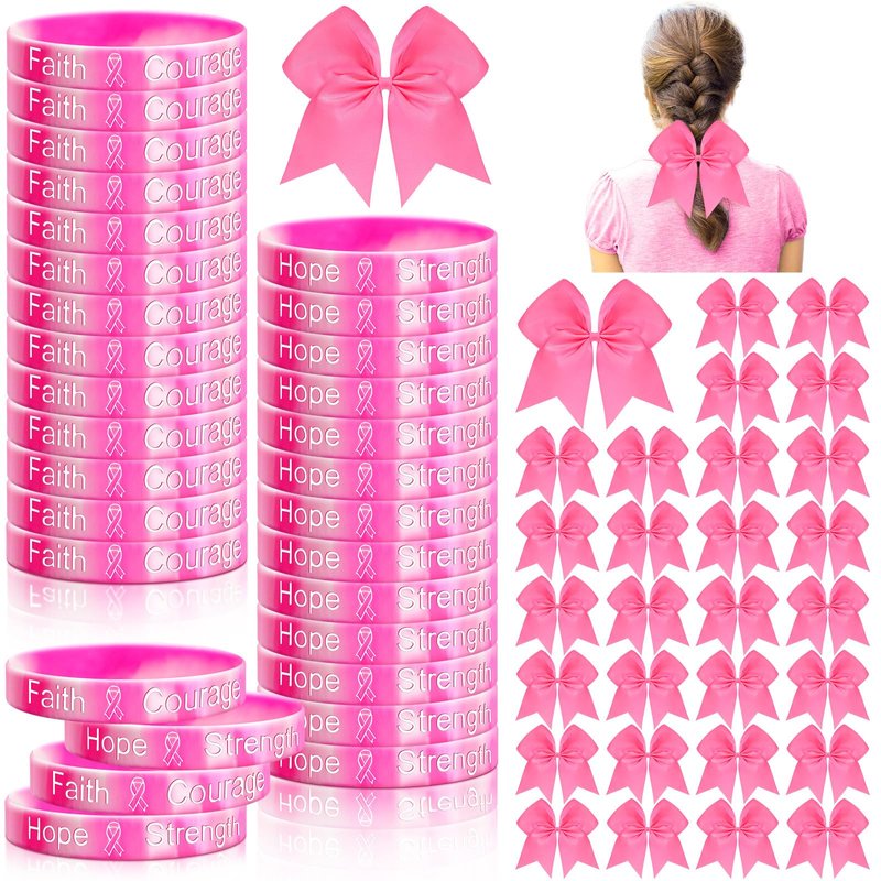 - Breast Cancer Awareness Set: our set includes 30 pink bows for girls and 30 breast cancer awareness bracelets; All designed to help spread breast cancer awareness; They're ideal for commercial, charity activities and events like road races, and can also serve as thoughtful gifts for survivors, friends, colleagues or family members