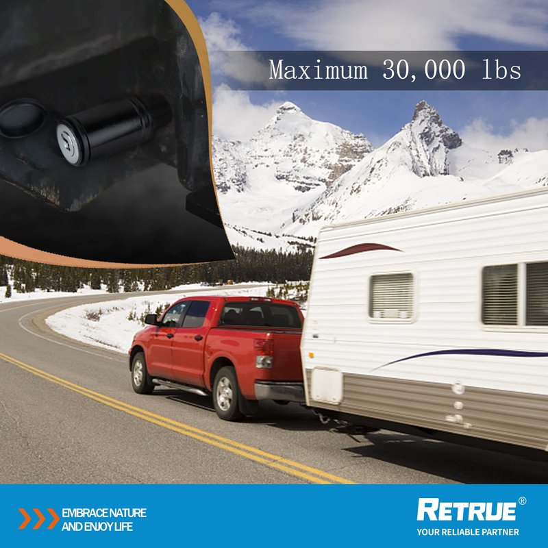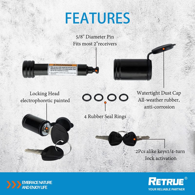 - The pin lock covered with high quality solid steel and black electrophoretic paint. It is quite strong and withstand 30,000 lbs, twice as much as a regular pin lock. Come with 4 noise reducing rubber rings. It is from RETRUE Your reliable partner. 24/7