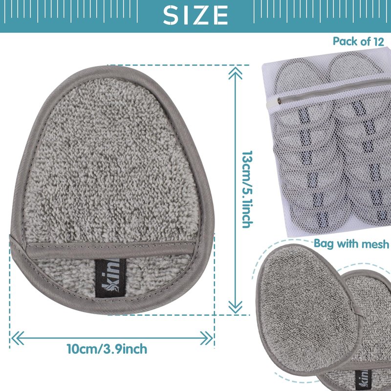 Reusable Makeup Remover Pads Microfiber Exfoliating Washcloth Ultra Soft Facial Cleansing Cloths for Sensitive Skin Face,Eye,Lips With Laundry Bag Pack of 12 Grey