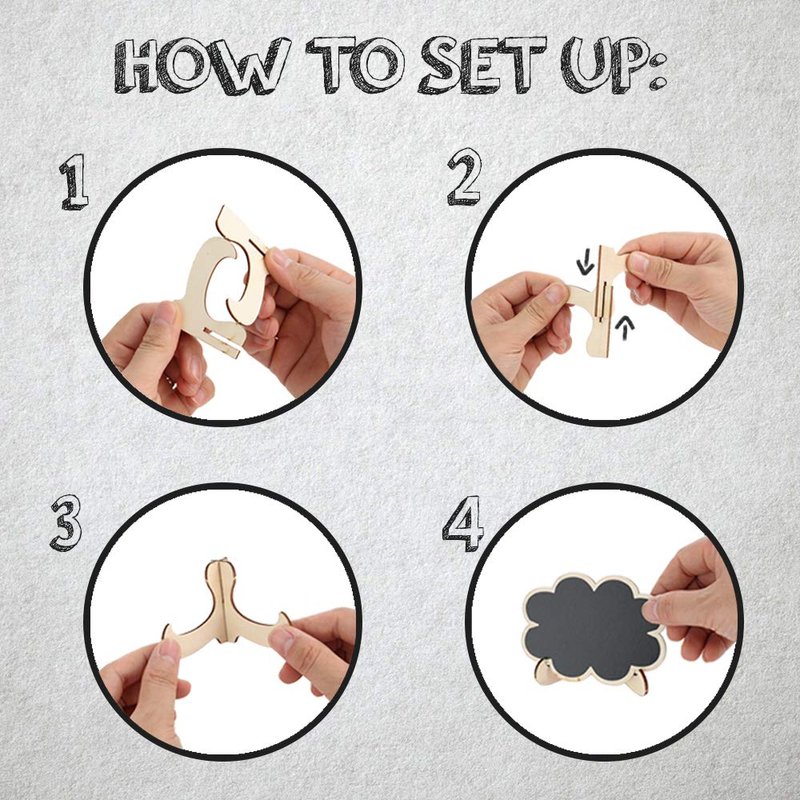 - 📍 EASY TO USE AND REUSE - Show some love to our mother earth by lessening the usage of paper and plastic and using these reusable chalk signs. These take less than 5 seconds to use, just assemble by inserting the base and putting the board, write your sign, and display. To reuse, wipe the board with a damp cloth or tissue. The liquid markers don’t leave any residue so the boards look the same every time you use them. Please clean immediately after using so the pigments don’t adhere to the board