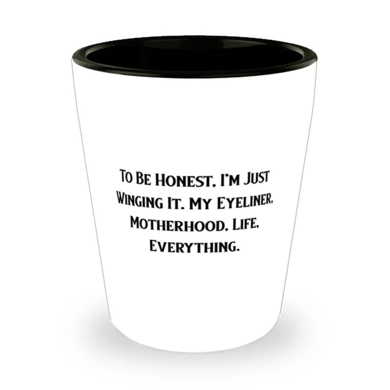 Reusable Mommy, To Be Honest, I'm Just Winging It. My Eyeliner, Motherhood, Life, Everything, Mother's Day Shot Glass For Mommy