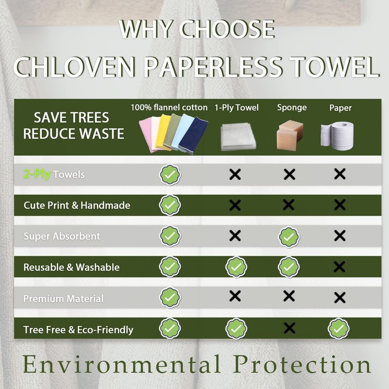 - WIDE APPLICATION - Each paperless towels is multi-purpose, effectively replacing all the functions of traditional disposable paper towels and napkins,also the uses are endless: such as kitchens, bathrooms, nurseries, etc.