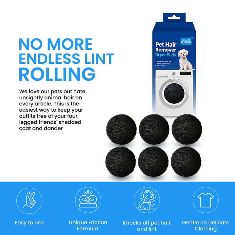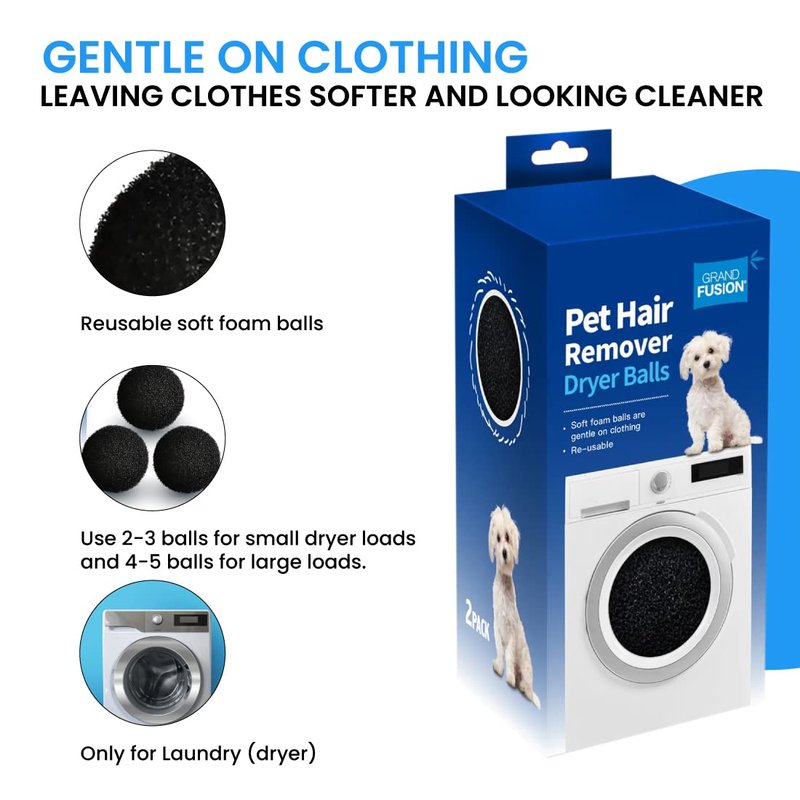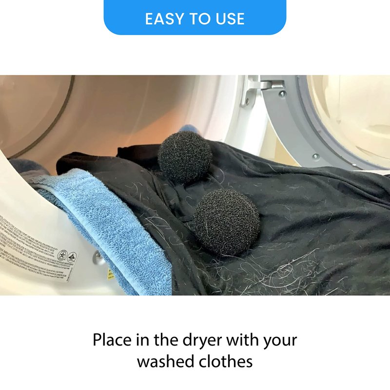 - EASY TO USE - This cat and dog hair remover foam dryer balls are more convenient and easy to use than lint brush or rollers. Toss in the dryer with your recently washed clothing and be amazed at your new pet-hair-free wardrobe.