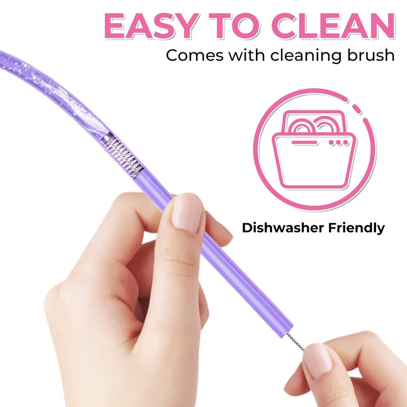 - šćEasy to CleanćDishwasher safe. The cleaning brushes included are long enough to clean the interior of the silicone straws to keep them in pristine condition at all times, and you can use them to quickly prewash the straws before throwing them in the dishwasher.