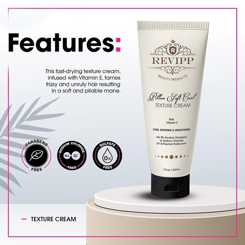 REVIPP Beauty Texture Cream for Curly Hair – 7fl oz Hair Styling Cream for Curly Hair – Fast Drying Curl Defining Cream with Vitamin E – Ideal for Frizzy, Rebellious Hair