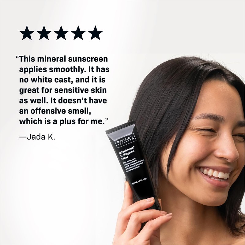 Revision Skincare Intellishade TruPhysical Clear, Mineral Sunscreen with SPF 50, Anti Aging Daily Moisturizer, Untinted and Oil Free, with Peptides and Antioxidants 1.7 Ounces