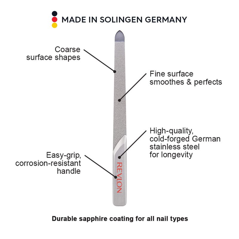 - Designed by master craftsmen in Germany, this metal nail file features a sapphire coating for filing both natural and acrylic nails