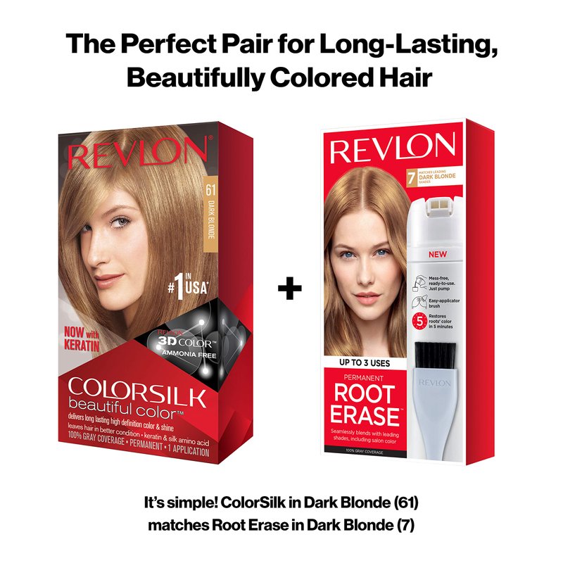 Revlon Permanent Hair Color, Permanent Hair Dye, Colorsilk with 100% Gray Coverage, Ammonia-Free, Keratin and Amino Acids, 61 Dark Blonde, 4.4 Oz (Pack of 3)
