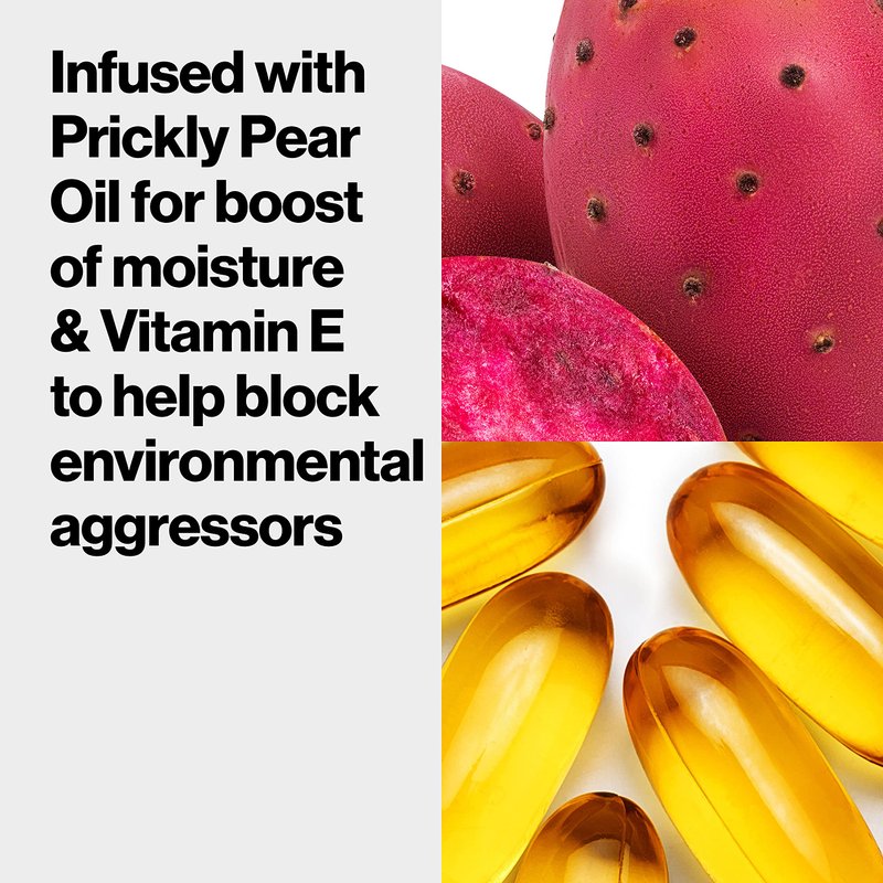 - New skin-enhancing liquid makeup foundation infused with prickly pear oil for a hydrated, glowy finish, and vitamin E to help block environmental aggressors