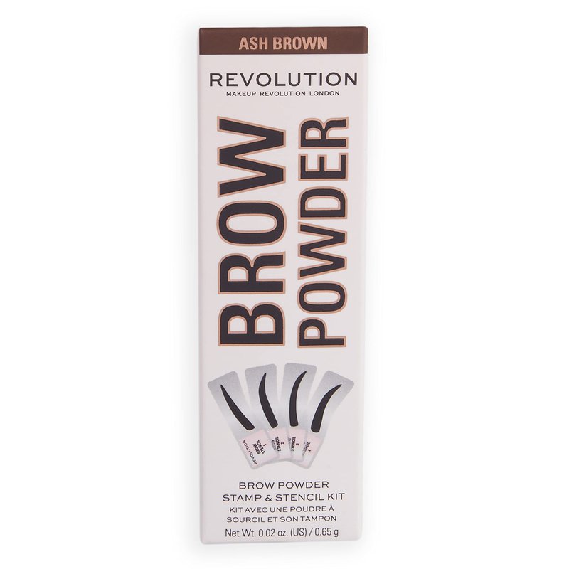 Revolution, Brow Powder Stamp & Stencil Kit, Brow Shaping Tool, Ash Brown, Includes Brow Stencils