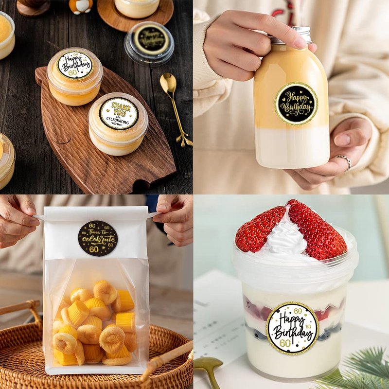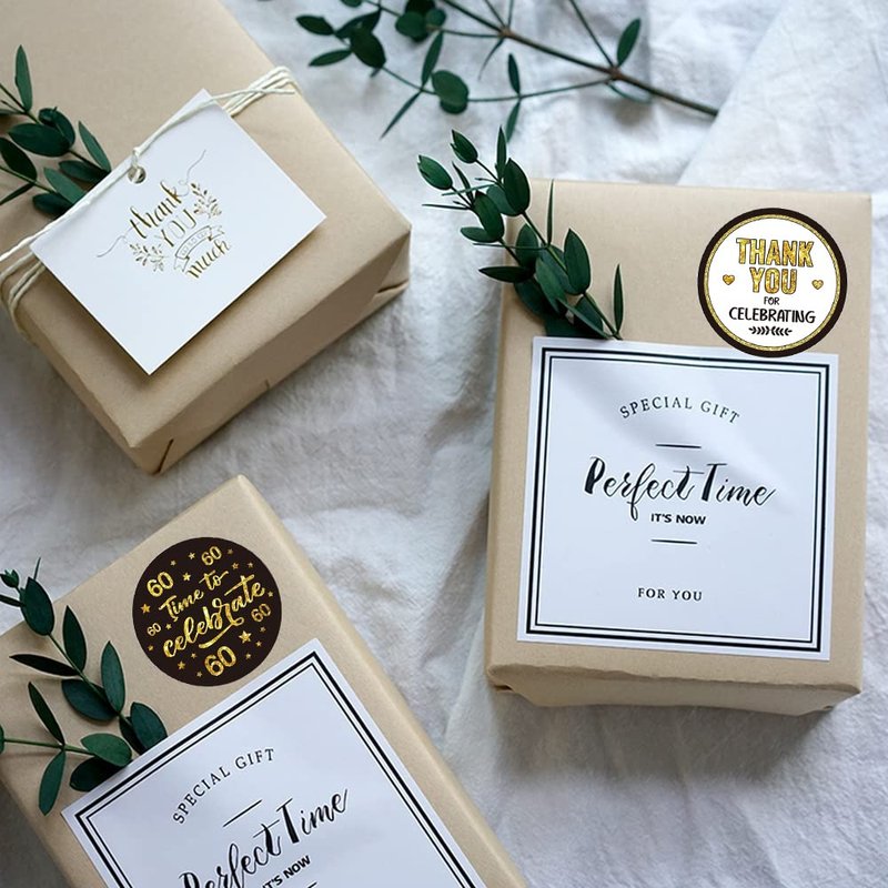 - MULTIPLE USES: These 60th birthday party stickers are perfect for 60th birthday party decorations . Wow them with brilliant stickers on your greeting cards, flower bouquets, candy bags, envelopes, gift boxes. A small sticker will change the entire party participant experience.