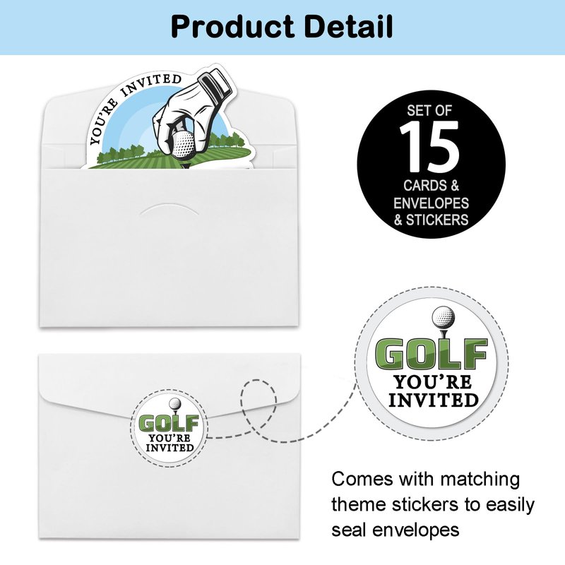 - Golf Party Invitation Sets: There are 15 golf theme shaped invitation cards, 15 premium white envelopes and 15 matching envelope seal stickers in this package. These beautiful invitations will make your party the talk of town and make the guests excited to come and participate.