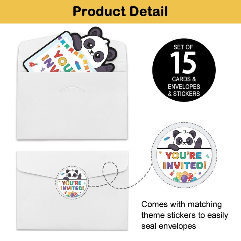 - Panda Birthday Party Invitation Sets: There are 15 panda shaped invitation cards, 15 premium white envelopes and 15 matching envelope seal stickers in this package. These beautiful invitations will make your party the talk of town and make the guests excited to come and participate.