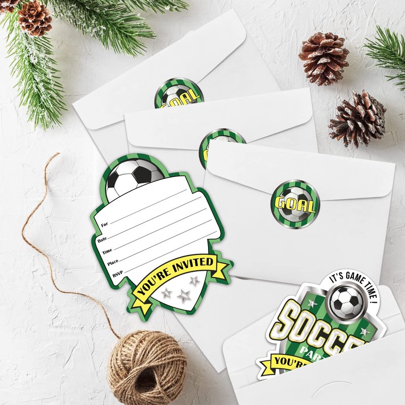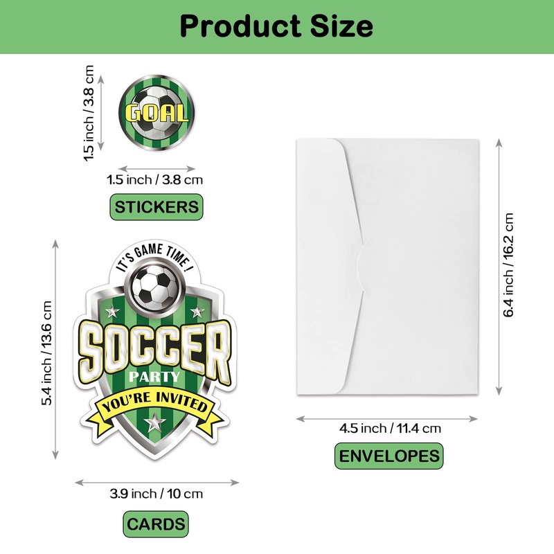 - Soccer Party Invitation Sets: There are 15 soccer brand shaped invitation cards, 15 premium white envelopes and 15 matching envelope seal stickers in this package. These beautiful invitations will make your party the talk of town and make the guests excited to come and participate.