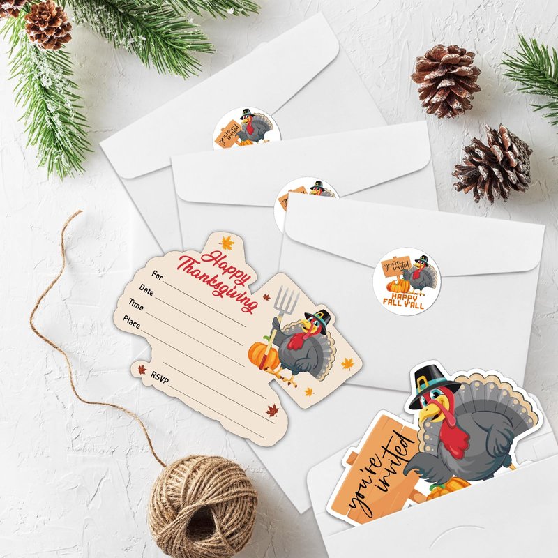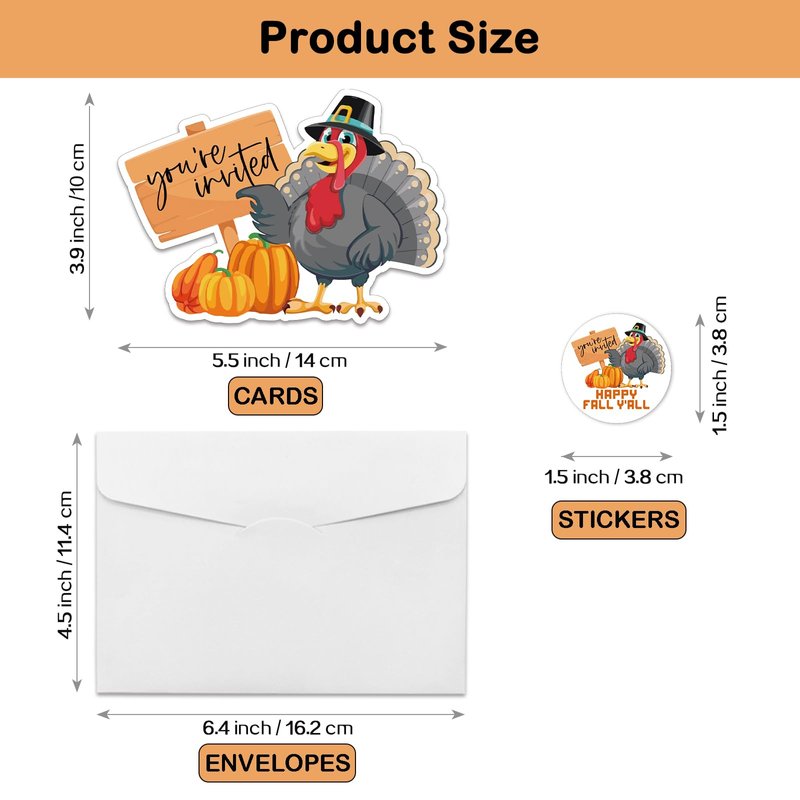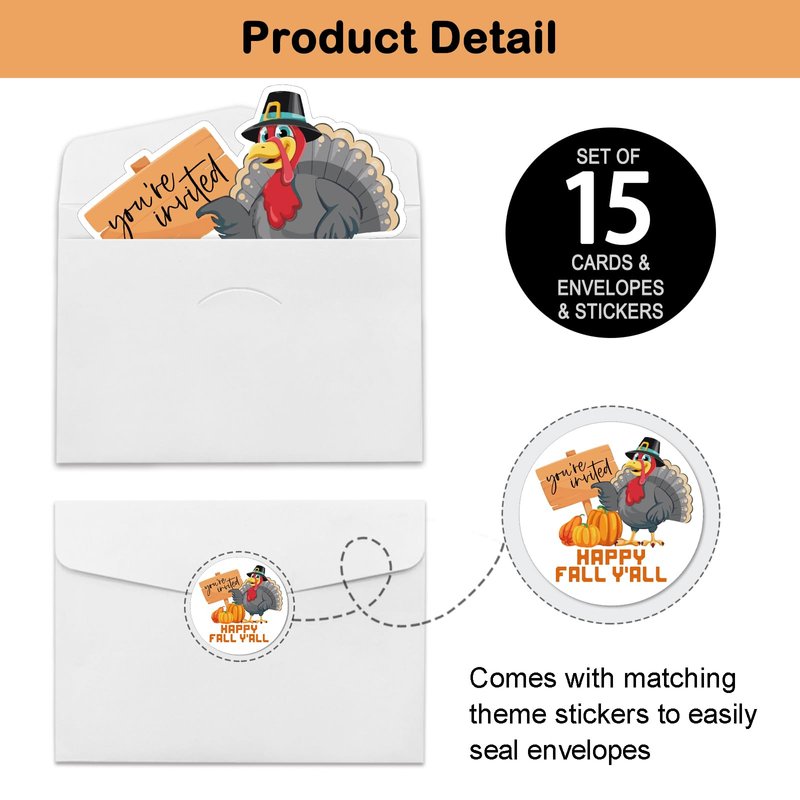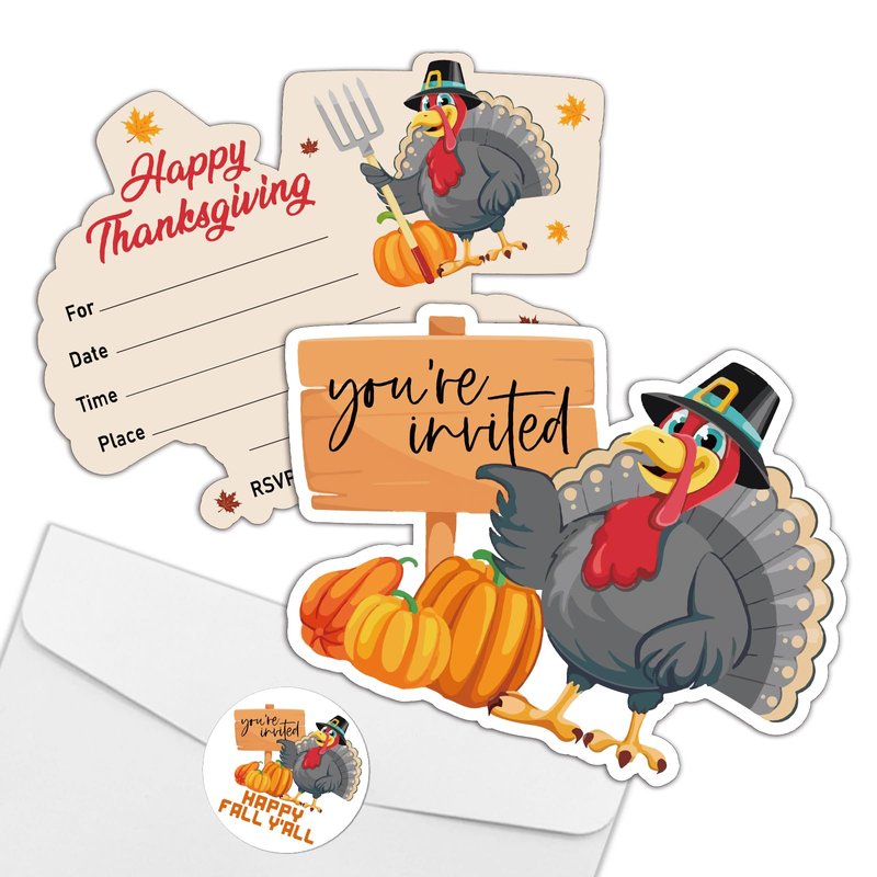 - Thanksgiving Party Invitation Sets: There are 15 turkey shaped invitation cards, 15 premium white envelopes and 15 matching envelope seal stickers in this package. These beautiful invitations will make your party the talk of town and make the guests excited to come and participate.