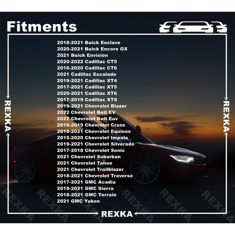 - Replaces GM 11547581, Fits: Buick: Enclave, Encore GX, Envision Cadillac: CT5, CT6, Escalade, Escalade ESV, LYRIQ, XT4, XT5, XT6 Chevrolet: Blazer, Bolt EUV, Bolt EV, Cruze, Equinox, Impala, Silverado 1500, Silverado 1500 LD, Silverado 1500 LTD, Silverado 2500 HD, Silverado 3500 HD, Sonic, Suburban, Tahoe, Trailblazer, Traverse GMC: Acadia, Hummer EV Pickup, Sierra 1500, Sierra 2500 HD, Sierra 3500 HD, Terrain, Yukon, Yukon XL
