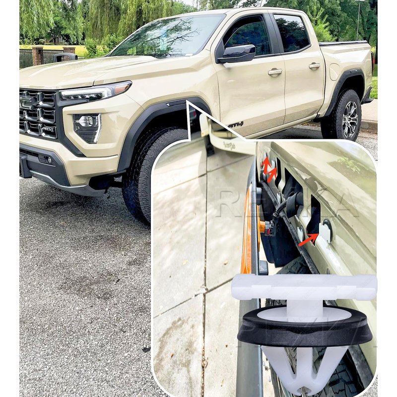 This Cips is a comprehensive clip set designed for a wide range of automotive applications. The clips are used to secure various components of the vehicle, including the Rocker Panel Molding Trim, Bumper Corner Cover, Liftgate Pull Handle, Running Board Step Pad, Trim Protector, Hood Molding, and Pickup Box Molding.