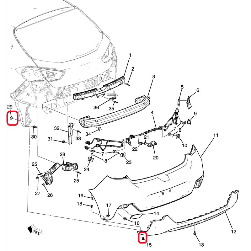 - Molding Bolt, Reflector Nut, Under-Body Shield Bolt, Mud Guard Bolt, Fender Liner Screw, Splash Shield Clip, Front Brace Bolt, Reinforcement Bolt, Cover Bolt, Lower Panel Bolt, Upper Cover Bolt, Bumper Cover Upper Bolt, Side Bracket Bolt, Side Retainer Bolt, Upper Grille Bolt, Valance Panel Mount Bolt, Lower Deflector Bolt, Bezel Bolt, Energy Absorber Bolt, Front Deflector Bolt, Lower Grille Bolt, Rear Deflector Bolt, Signal Lamp Assembly Bolt, Lower Trim Retainer, Spoiler Bolt, Lower Panel Moun