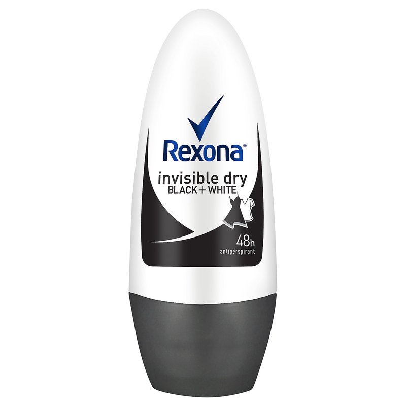 REXONA Women Antiperspirant Roll On Deodorant Invisible Dry Black+White 50ml