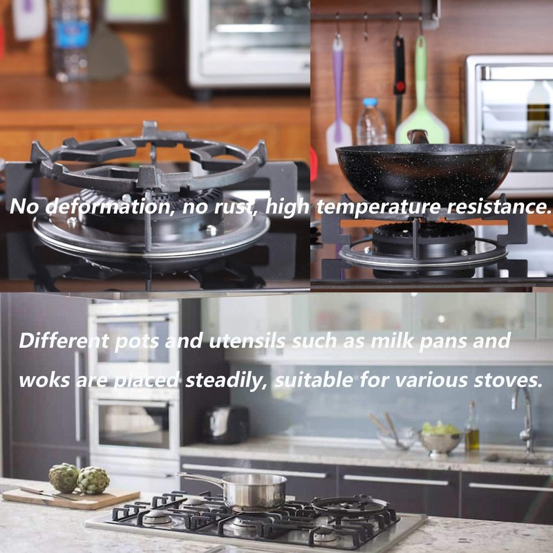- 【Greater Energy Efficiency】Stove wok ring controls the heat of a gas range, Absorbs and diffuses heat evenly for greater energy efficiency. Also perfect for balancing smaller pots or pans on the stovetop.