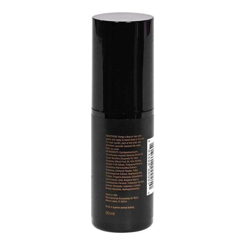 Go Ahead, Indulge. Try Reza Fixation Black Diamond Oil, Infused With Champagne, Gold & Diamonds. You'll Love the Luxurious Results: Nourished Hair with Zero Frizz & Healthy Hydration. Created by TV star Reza Farahan, this luxury hair oil: - Deeply nourishes scalp and hair, replenishing precious moisture - Tames unsightly frizz for a sleek, smooth, silky look - Extends the life of color treatments - Features Tahitian Monoi Oil, to restore moisture and nutrients The Secret's the Proprietary Formula Featuring the Mystic 7 Complex: - Black Truffle Oil for vitamin-rich moisture - Pea Protein for nourishing strength - Rose of Jericho to soothe & condition hair & scalp - King Coconut Oil to help rejuvenate your hair - Strawberry Seed Extract, - Champagne for brightness & sparkle - Crushed Diamonds for ultimate brilliance All this plus Reza's exclusive gold-infused shield, with genuine gold to protect your hair against damaging heat & humidity. These precious ingredients work together to leave hair strokably soft. Unisex, multicultural, ideal for all hair types & textures. Sulfate-Free, Paraben-Free, Gluten-Free, Cruelty-Free, Color-Safe. This hair oil is 100% safe. Will never strip your hair. Safe for colored & keratin-treated hair.